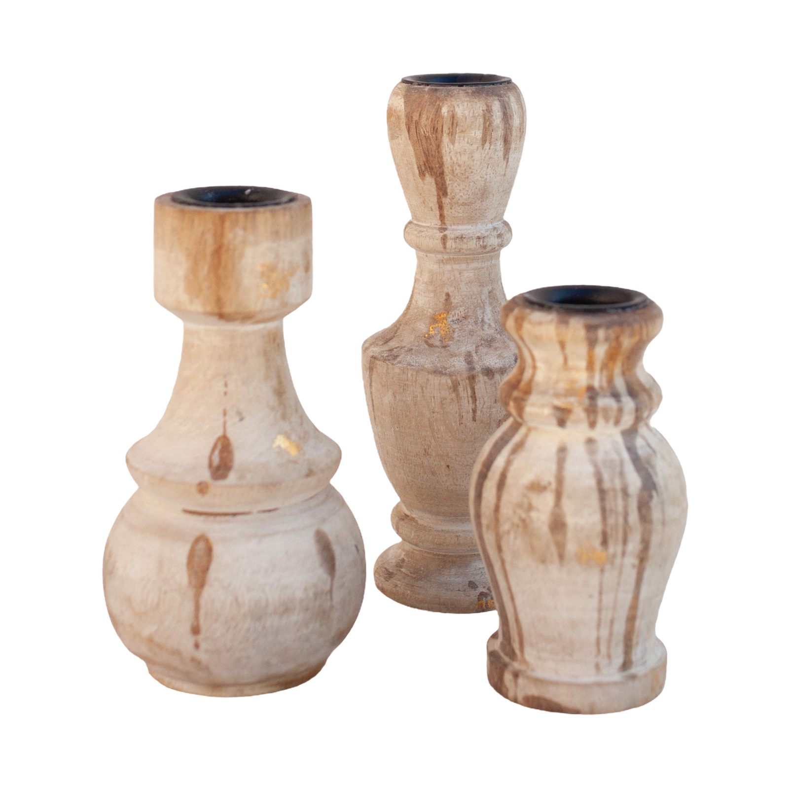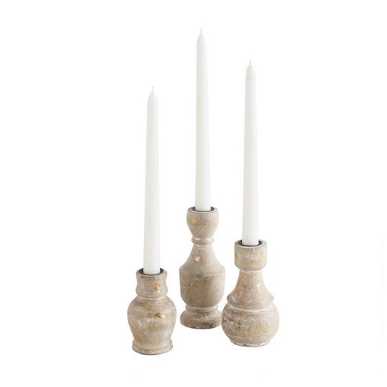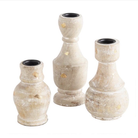Tags: white, wood, whitewash, candle, natural, taper, candle holder, gold fleck