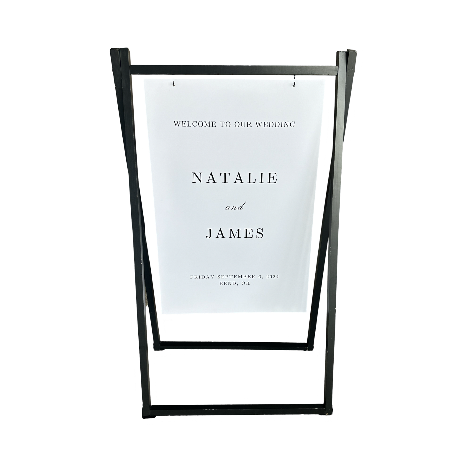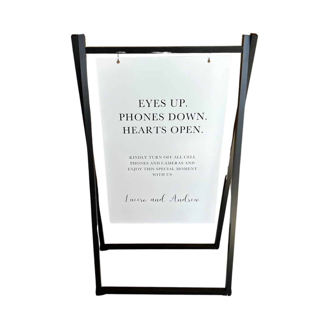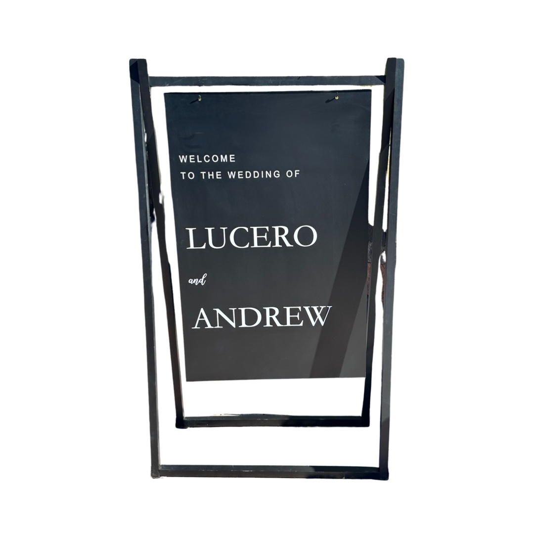 Includes black hanging easel, black or white board & opposite color custom lettering.