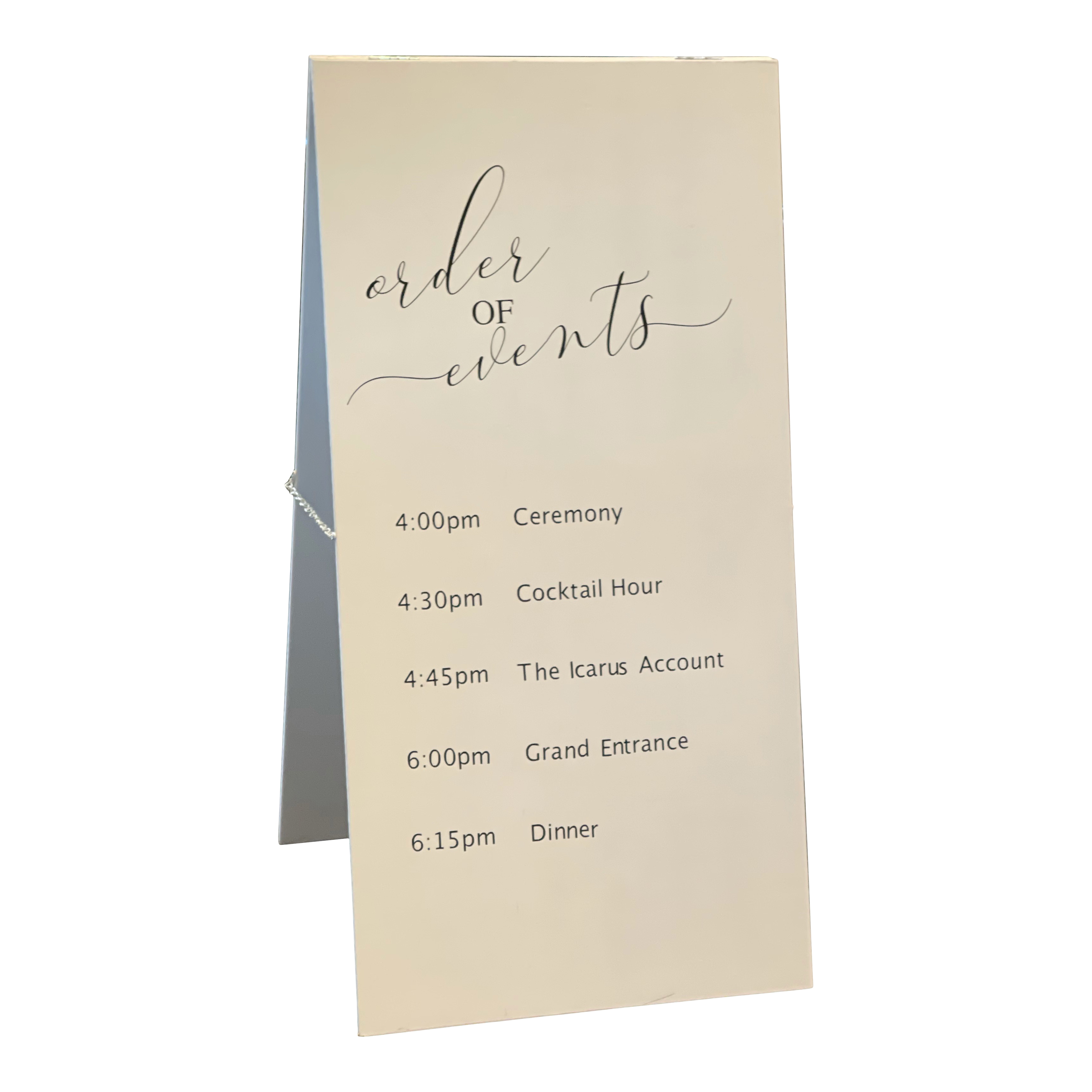 Includes A-frame boards & custom lettering.