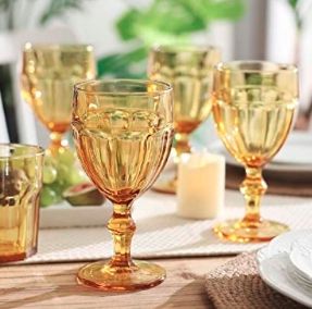 Tags: bar, gold, water, glasses, yellow, goblet, amber, tabletop